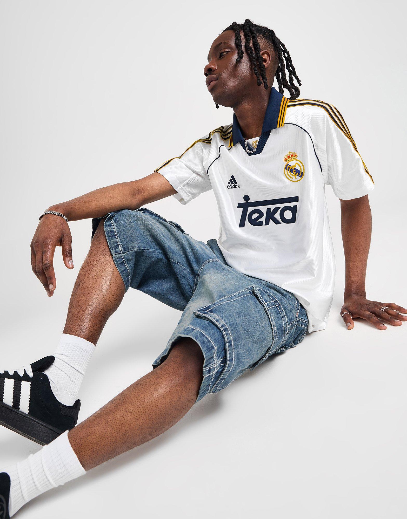 Revive un triunfo memorable para el Real Madrid con esta reedición de la camiseta de la primera equipación del club para la temporada 99/00 con el logo de Teka patrocinador del club en ese momento. Idéntica a la que vistieron los jugadores para celebrar el título más importante del fútbol europeo en París, combina un corte holgado y un cuello tunecino que le confieren un estilo clásico. El escudo vintage del equipo cosido en el pecho pone el broche final a esta prenda perfecta para hinchas incondicionales y apasionados de la moda futbolera.