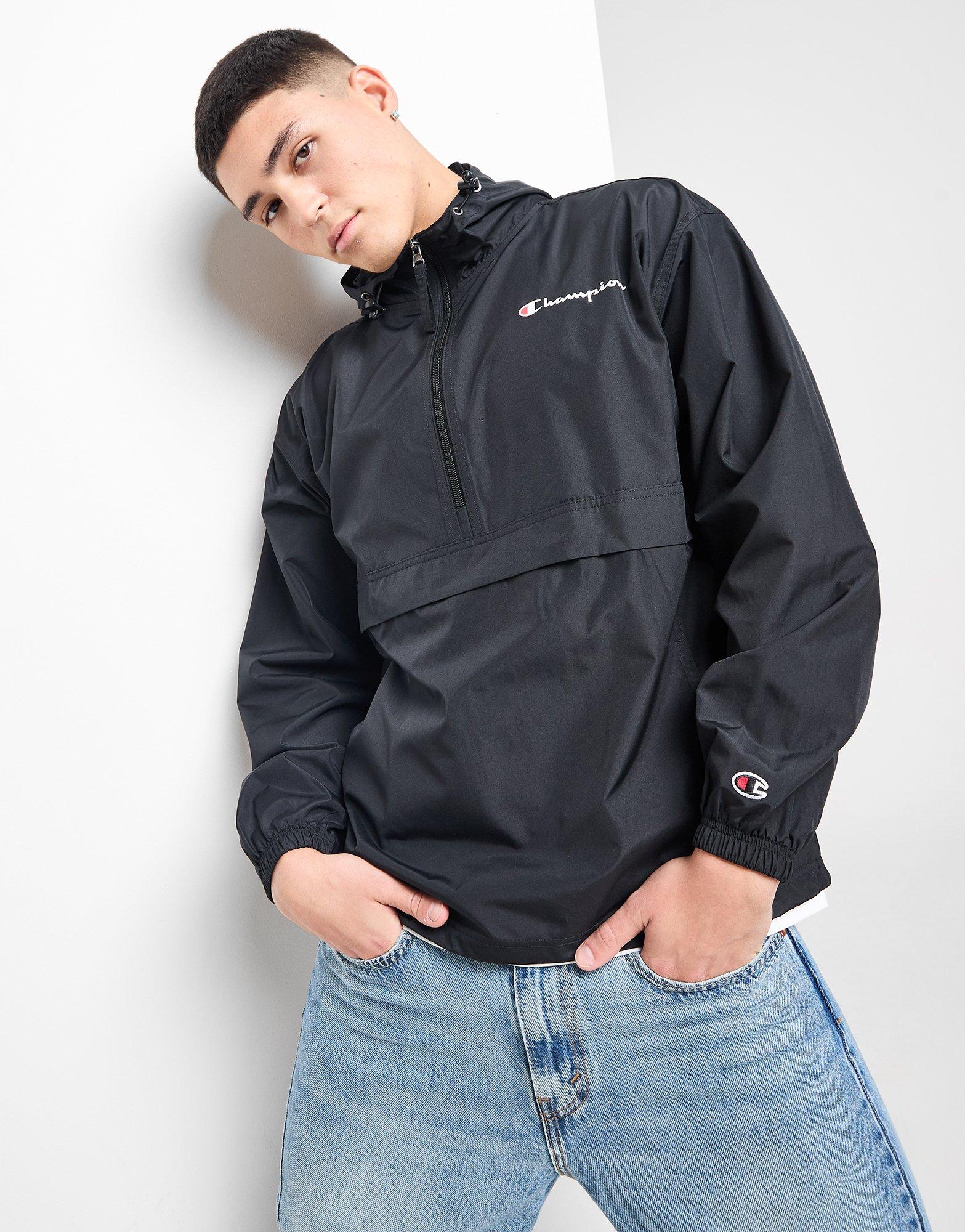 Añade una capa extra con esta chaqueta de media cremallera para hombre de Champion. En color negro, esta chaqueta está confeccionada en poliéster suave y ligero para una comodidad total. Dispone de cierre de media cremallera, capucha ajustable y cierre de velcro en el bajo para una cobertura personalizada, con puños elásticos para protegerte del frío. Con bolsillos laterales y una bolsa para guardarla, se completa con el logotipo Champion en el puño de la manga izquierda y en el pecho. Se puede lavar a máquina. | Nuestro modelo mide 152.4 cm, mide 96.52 cm de pecho y lleva la talla M.