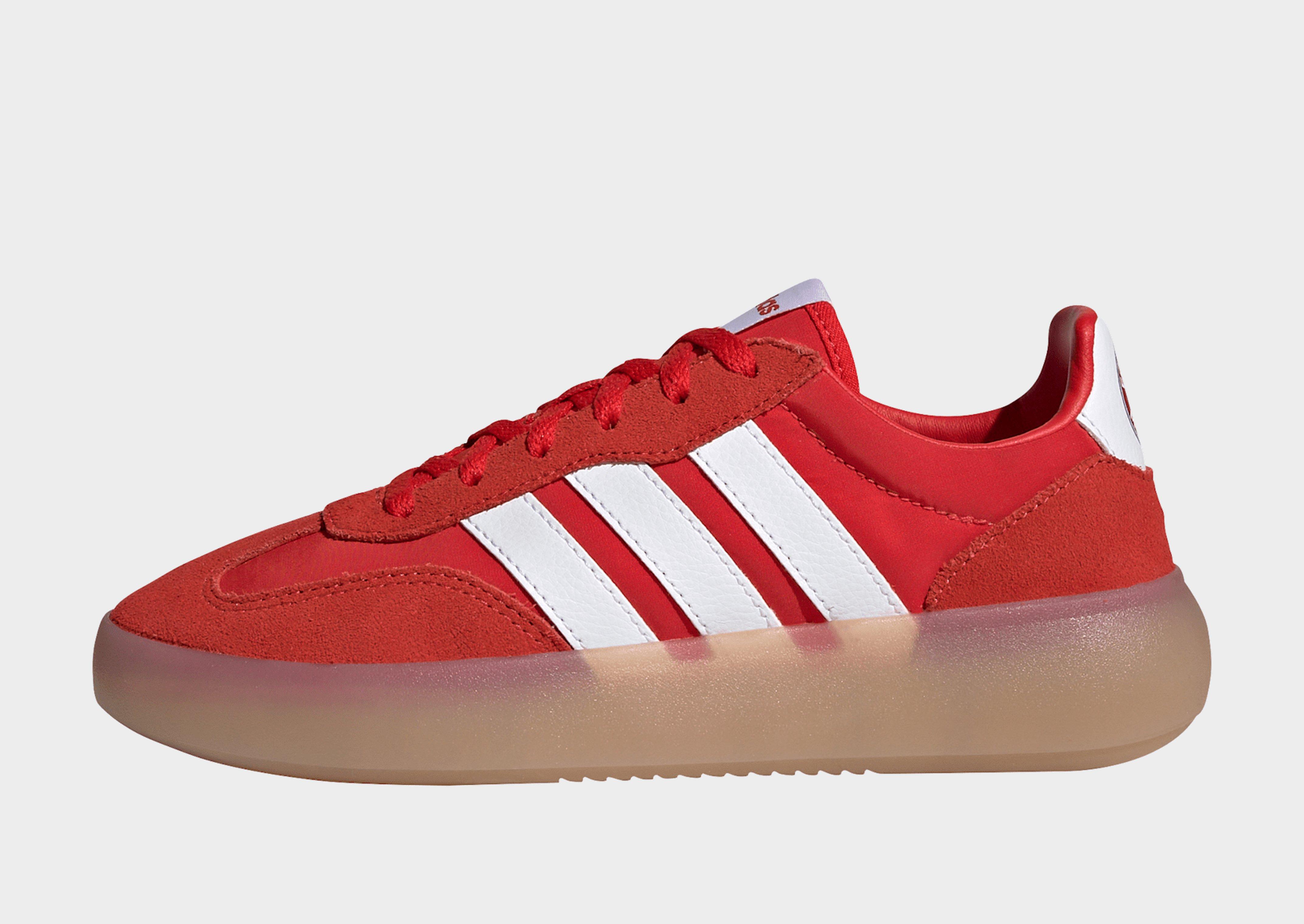 Añade un toque adidas a tu colección de calzado para fuera del campo. Esta elegante zapatilla de fútbol Barreda Decode junior tienen un empeine de piel suave con la clásica puntera en T para una mayor resistencia a la abrasión. Incorpora los famosos colores rojos del Manchester United, y un escudo del club en el refuerzo del talón. Debajo, una suela de goma de gran agarre permite un juego de pies elegante cuando estás en movimiento.
